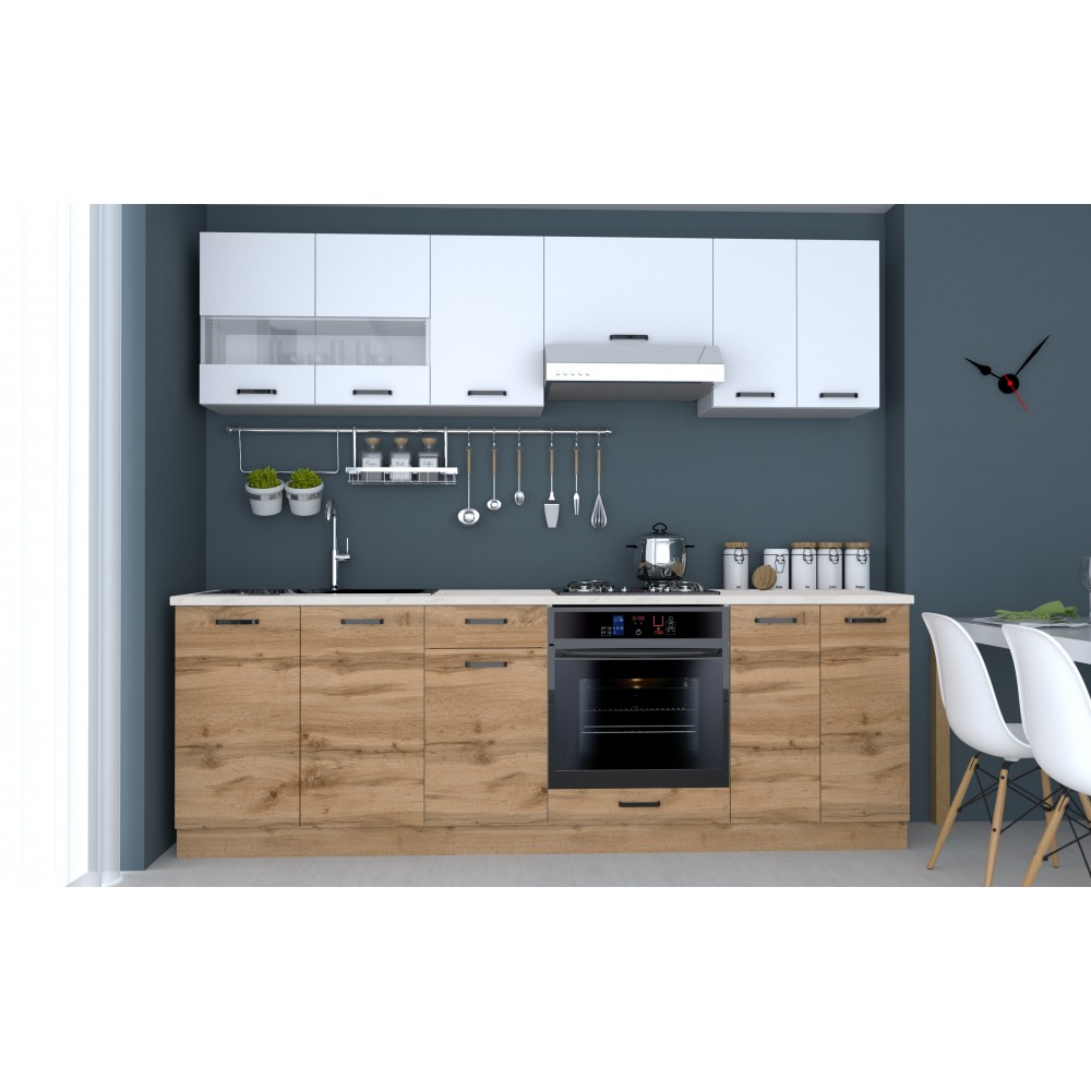 Bucatarie Vio 240 cm Stejar k003 Alb pal melaminat - Set bucatarie completa